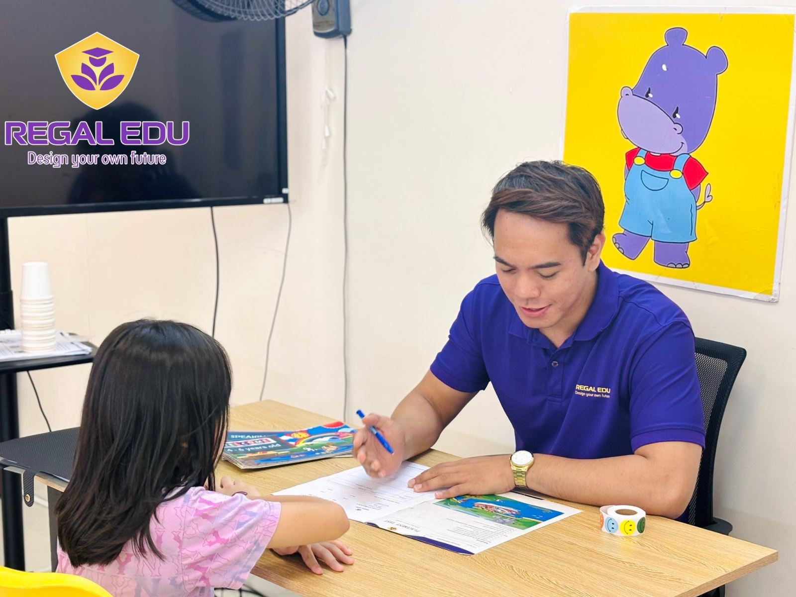 Tại Regal Edu, học thử được xem là bước đánh giá và định hướng, không phải buổi học mang tính giới thiệu hình thức. Trước buổi học thử, con sẽ được kiểm tra 1:1 đầu vào với giáo viên nước ngoài. Giáo viên quan sát phản xạ, mức độ tập trung và khả năng tương tác của từng trẻ, từ đó đưa ra nhận xét cụ thể cho phụ huynh. Cuối cùng, con sẽ được sắp xếp lớp học thử phù hợp với độ tuổi và năng lực tiếng Anh.