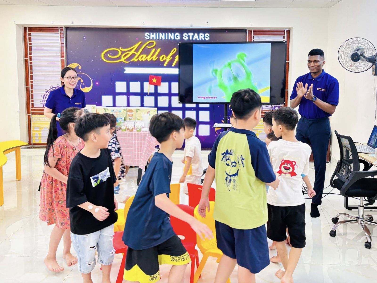 Đây là phần trọng tâm trong mỗi buổi học tiếng Anh cho trẻ. Thay vì yêu cầu trẻ ngồi yên ghi chép, giáo viên lồng ghép nội dung bài học vào các hoạt động như trò chơi, hình ảnh, thẻ từ, bài hát và vận động theo chủ đề.