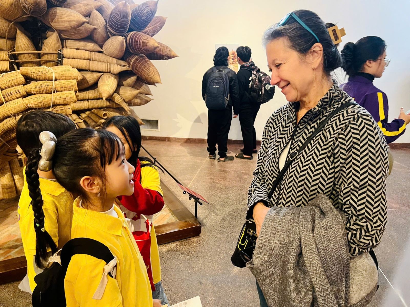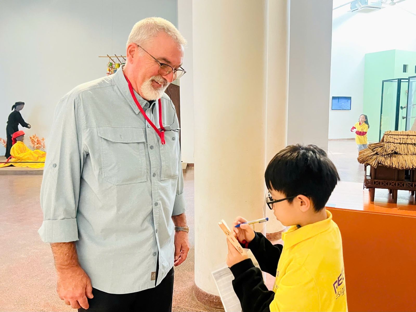 Trước chuyến đi, trẻ được chuẩn bị các mẫu câu giao tiếp đơn giản bằng tiếng Anh: chào hỏi, giới thiệu bản thân, hỏi - đáp cơ bản. Trong không gian bảo tàng, trẻ được khuyến khích chủ động trò chuyện với khách nước ngoài, giới thiệu về hiện vật, về lịch sử và văn hoá Việt Nam bằng chính khả năng tiếng Anh của mình.